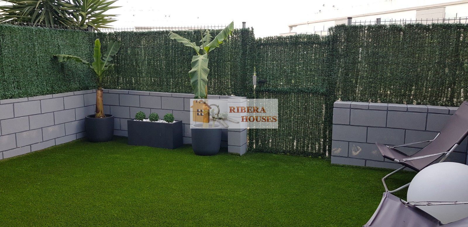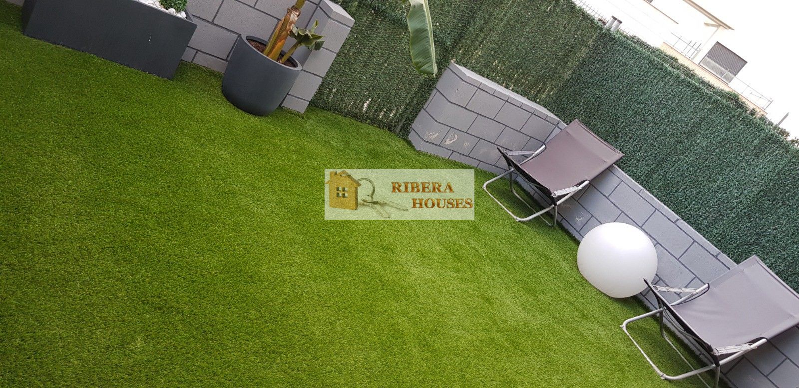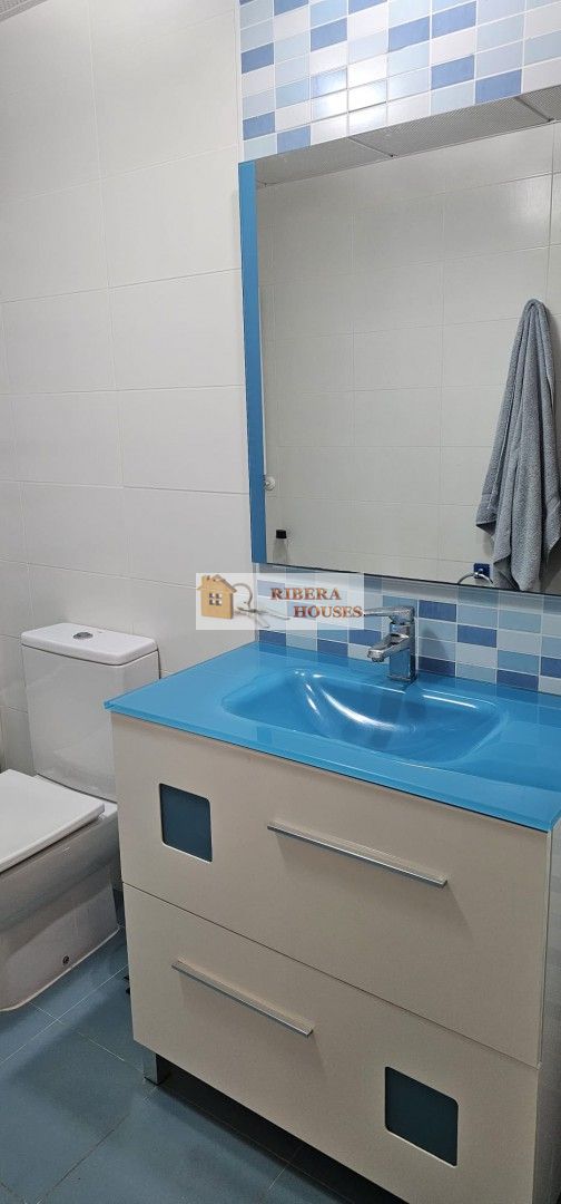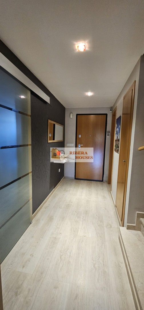 Desde el salón podemos acceder a terraza semicubierta exterior desde la cual accedemos a su vez a la zona común. La zona común tiene 2 piscinas, zona verde, parque columpios para peques. Toda la zona alumbrada por la noche.