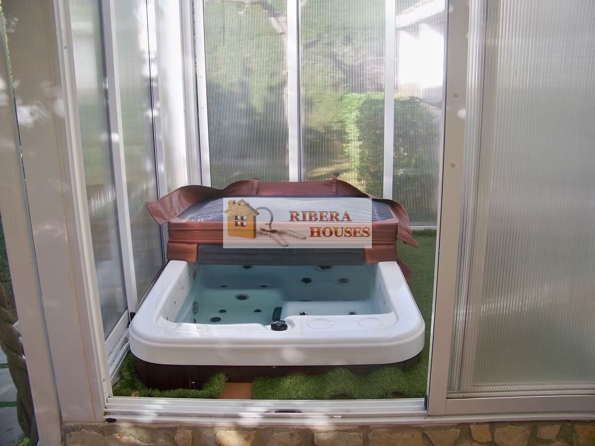 Chalet independiente en parcela de 1.050 m² con jardín, jacuzzi, garaje cerrado y vigilancia las 24h.
